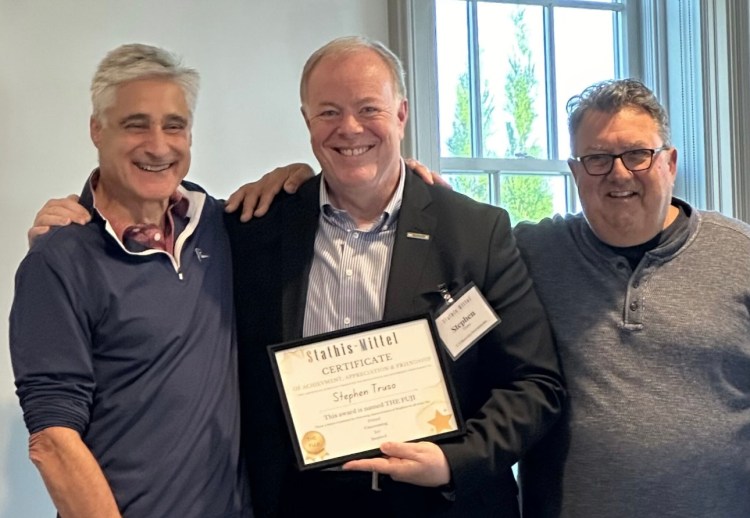 At the May 2024 Roundtable Forum, Bob and Scott were honored to present the second annual Stathis-Mittel “FUJI” Award to Stephen Truso, who exemplifies – Friendship, an Unassuming manner, a Joy – with a smile, and Inspiring.” Congratulations Stephen!